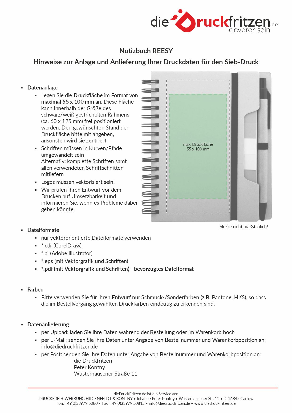 | Bitte beachten Sie beim Anlegen Ihrer Dateien, die Hinweise unter DRUCKDATEN ! Wenn Sie keine Möglichkeit haben die Daten in der geforderten Form zu liefern - wir gestalten auch für Sie entsprechend Ihren Vorgaben! Fragen Sie einfach an! Kosten werden nach Aufwand berechnet. |